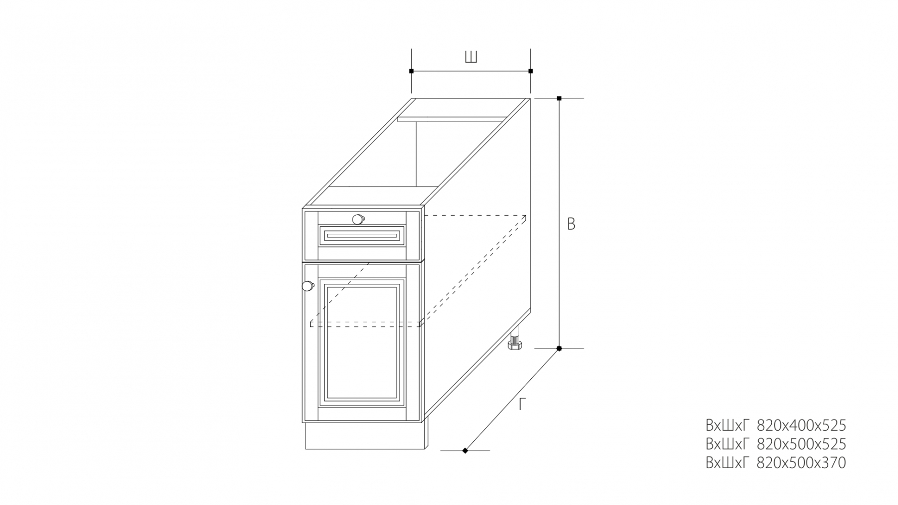 ВхШхГ: 820х500х370 мм.